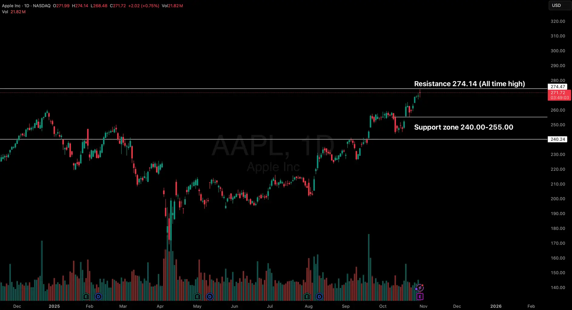 Apple recently reached a $4 trillion market capitalization for the first time, making it the second-largest company by market cap after Nvidia. That milestone raises the stakes for the upcoming earnings release, since a weak report could erode investor confidence and prompt profit-taking from these highs.