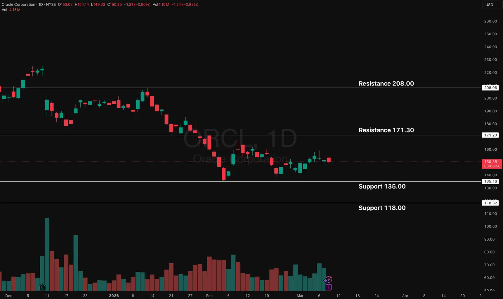 Oracle was among the earliest names to decline when the industrywide AI correction began in October. The stock has fallen by more than 50% from its recent highs over the span of a few months.